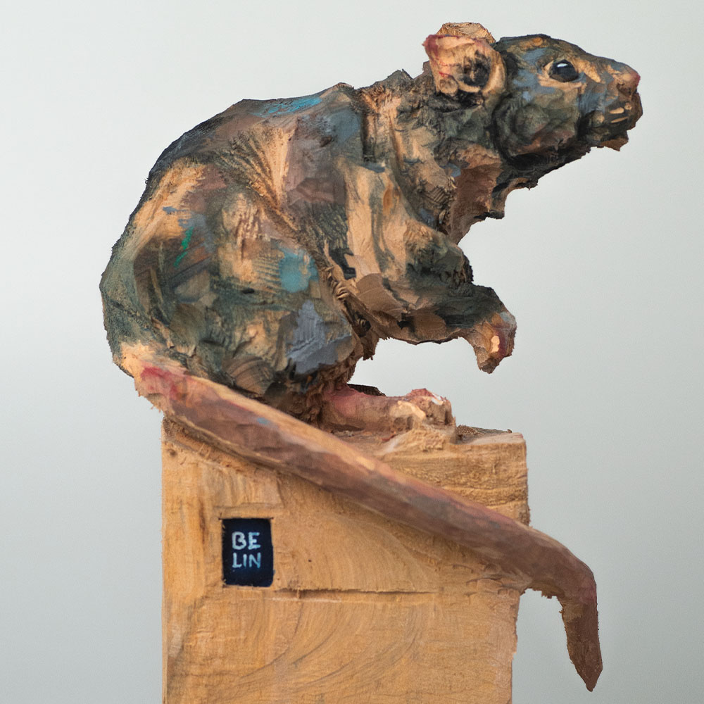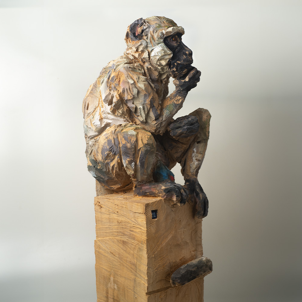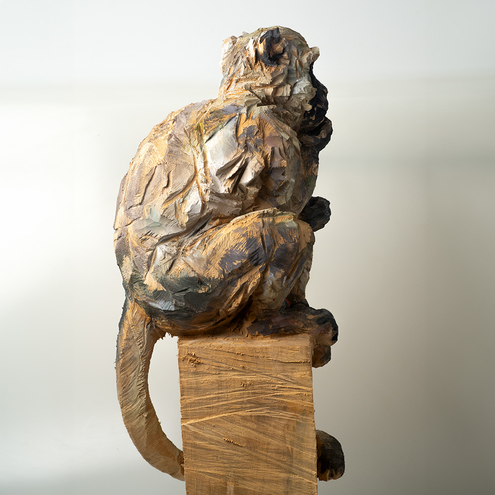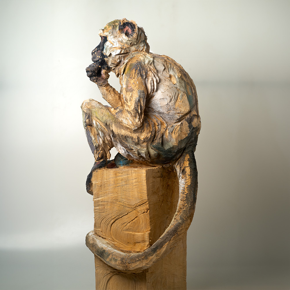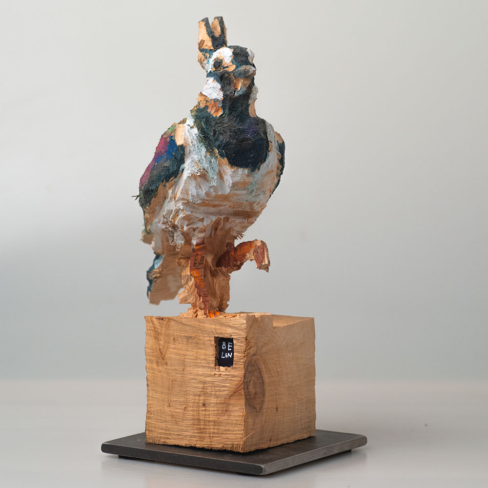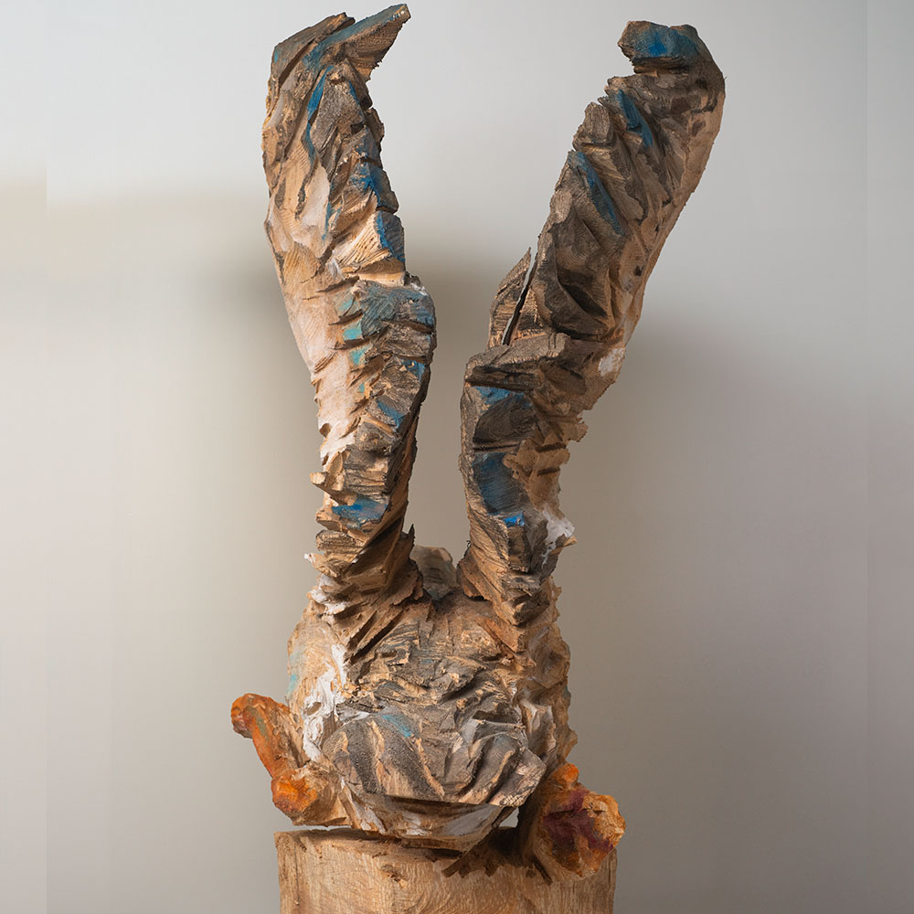 Passionné par la faune depuis toujours, je me suis lancé le défi de sculpter les animaux qui m’entourent, avec l’envie de montrer qu’ils sont tous extraordinaires, même ceux que l’on ne remarque plus. C’est une véritable reconnexion avec mes valeurs et mon environnement. Chaque sculpture est taillée dans un seul bloc de bois. La tronçonneuse, pour moi, est un outil qui permet de capturer l’essentiel, sans s’enliser dans les détails. Cette technique laisse la matière brute, donnant une place à l’imaginaire. Avec mon approche de la peinture, j’utilise des pigments naturels des Ocres du Roussillon pour faire ressortir la vie.